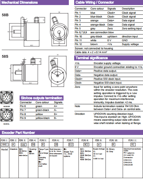 輸出電路: SSI數據線RS485 2048 Sin/Cos信號 |